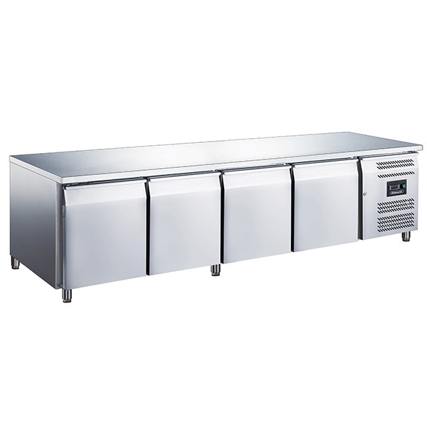 The Blizzard SNC4 4-door low height 650mm snack counter refrigerator is designed for use in commercial kitchens and a popular choice for restaurants, care homes, hospitals & schools. This counter refrigerator is Manufactured from high grade stainless steel, both internally & externally, this space saving preparation counter refrigerator, features a digital Dixel controller with temperature display, heavy duty adjustable legs, automiatic defrost, easy to fit replaceable door gaskets, self closing doors with stay open facility, and 4 GN1/1 adjustable shelves for flexible food storage, making this a great choice for any professional kitchen and covered with a 3 year warranty.