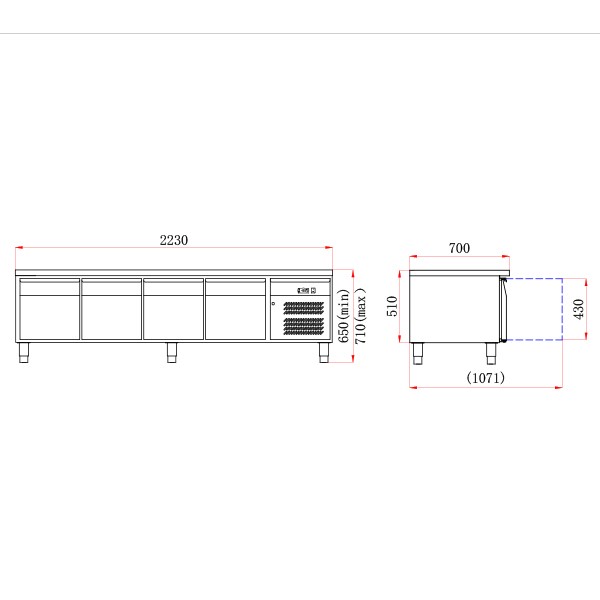 Dimensions (H x W x D): 650 x 2230 x 700mm