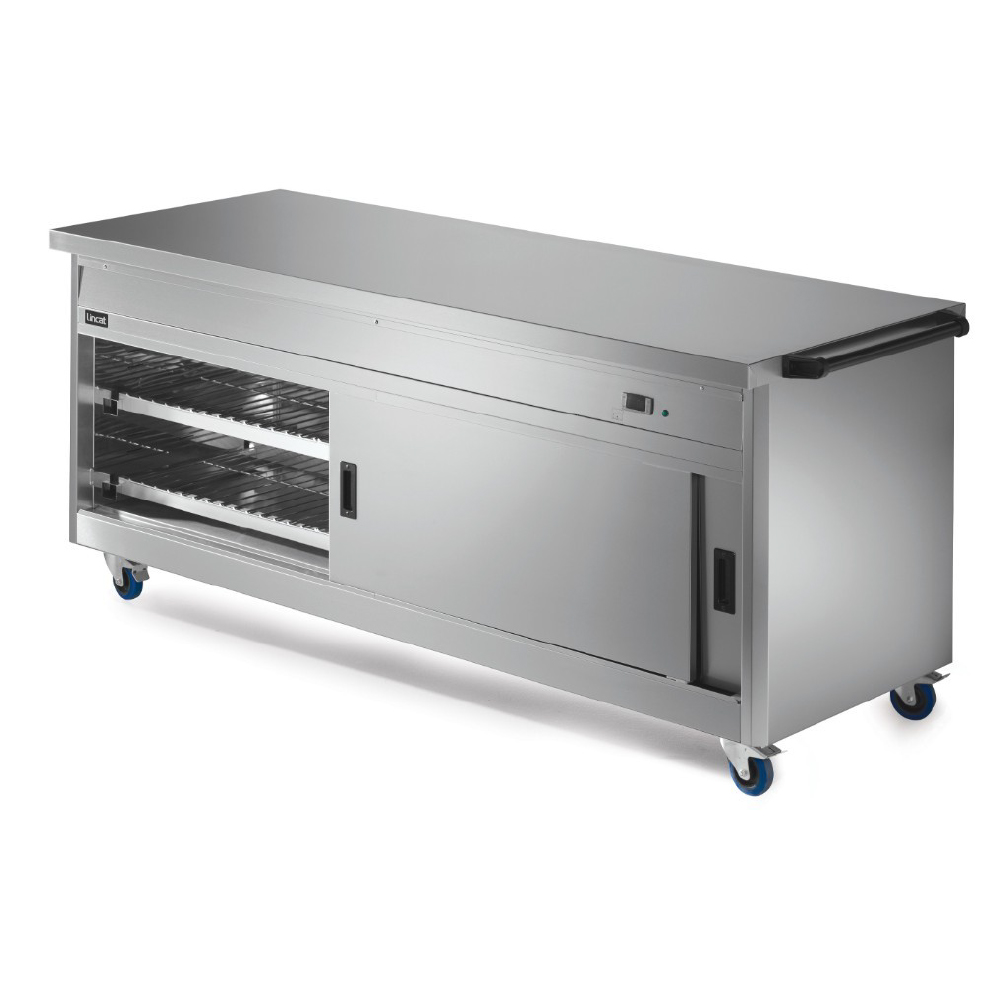 Helping to cater in demanding environments such as cafeterias, canteens and restaurants, the Panther 800 Series Hot Cupboard is perfect for plating and garnishing and as a pass to front of house staff, while it also provides extra workspace or can be used as a mobile workstation. The unit is fan assisted, providing even heat distribution, fast heat up and recovery times, and lower energy usage. Built for efficiency, the model has sliding doors to both sides, providing enhanced workflow capability. Fully 1/1 GN compatible, this unit accomodates 6 x 1/1 GN containers up to 150mm deep, while the thermostatically controlled bain marie top can be operated with wet or dry heat. An accurate digital electronic control of the hot cupboard temperature, adjustable between 20 and 99 °C, ensures compliance with food hygiene regulations.